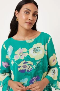 Wallis Petite Green Floral Flute Sleeve Shift Dress