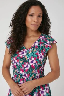 Wallis Petite Pink Tropical Tiered Viscose Midi Dress