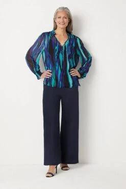 Wallis Teal Stripe Shirred Neck Detail Blouse