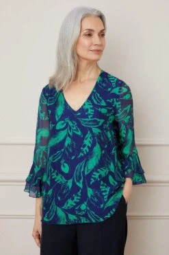 Wallis Silk Mix Feather Print Flute Sleeve Top