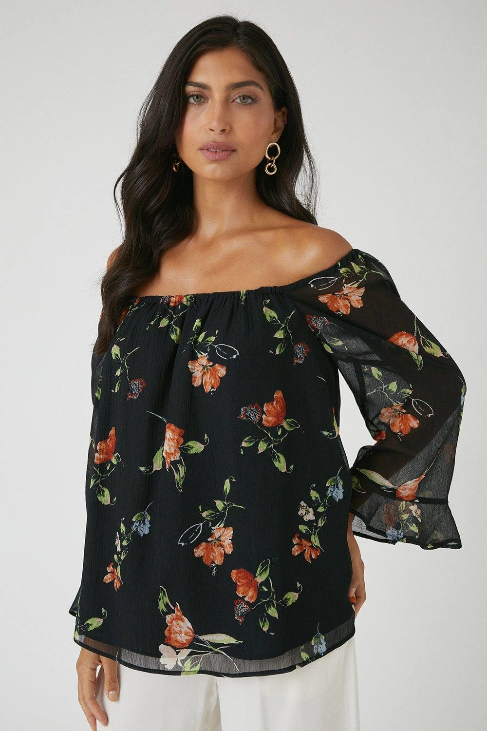 Be the first to review “Wallis Black Floral Flute Sleeve Bardot Top” Cancel reply