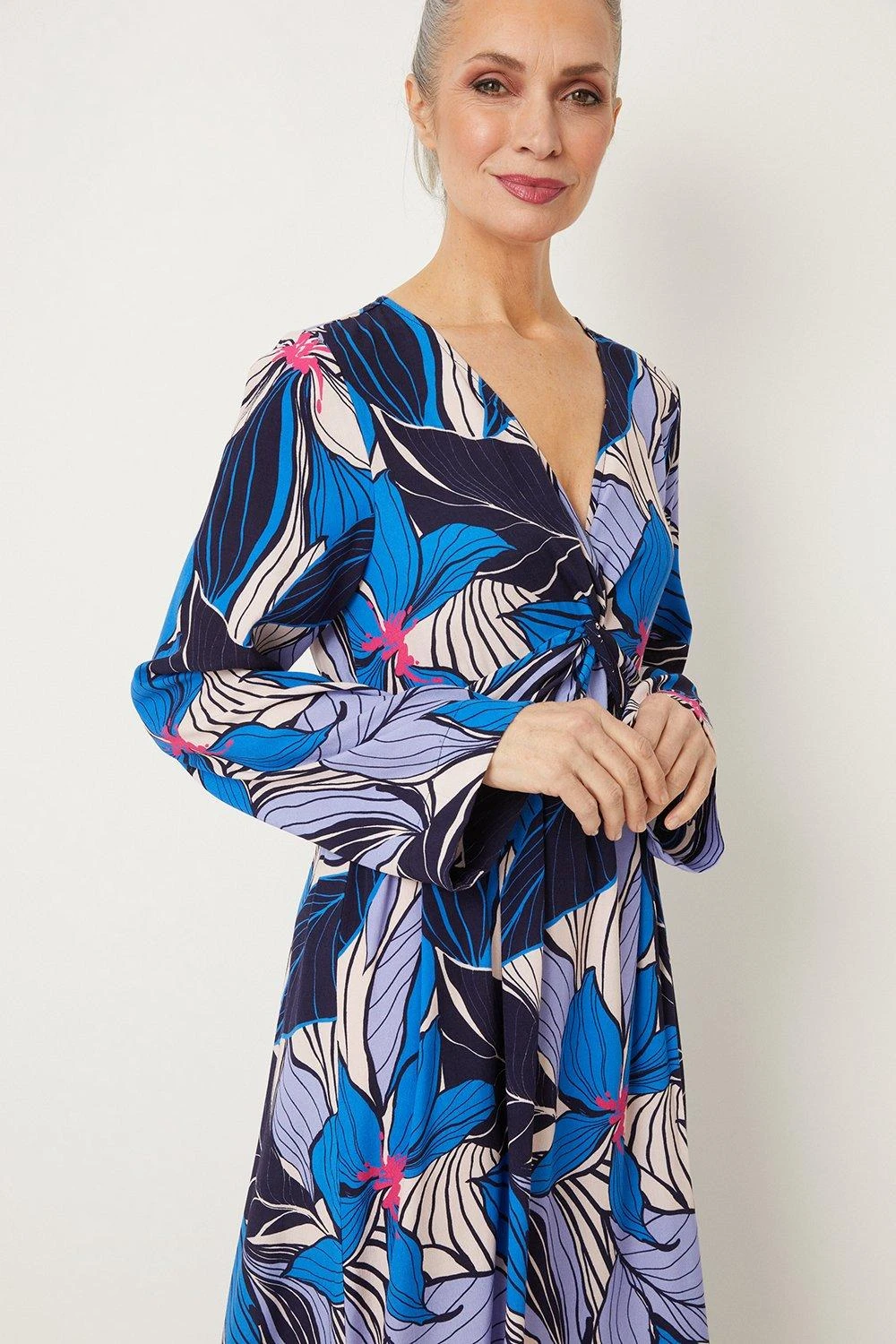 Just say dress. From sophisticated workwear styles to show stopping event-ready designs, our new season dresses have you covered for any and all occasions. Discover unique prints, elegant silhouettes and versatile styles. Whatever you’ve got in the diary, we’ve got the dress for it. Shop versatile Midi dresses, elegant Maxi dresses and everything in between. Style: Blue Leaf Twist Front Dress. Ideal for: Daywear. Design: All Over Print. Model wears size UK 10 and is 5′ 9″ tall. Make-up & Fragrance: Primer (Yves Saint Laurent, Touche Eclat Blur Primer 30ml), Foundation (Yves Saint Laurent, New All Hours Foundation), Blusher (Estée Lauder, Pure Color Envy Sculpting Blush), Mascara (Lancôme, Hypnôse Custom-Wear Volume Mascara), Setting Spray (Urban Decay, All Nighter Setting Spray 118ml), Fragrance (Valentino, Born In Roma Eau De Parfum).This garment is READY FOR THE FUTURE.Viscose sourced from responsibly managed forests and using responsible production practices.Find out more about our sustainability guidelines and goals.