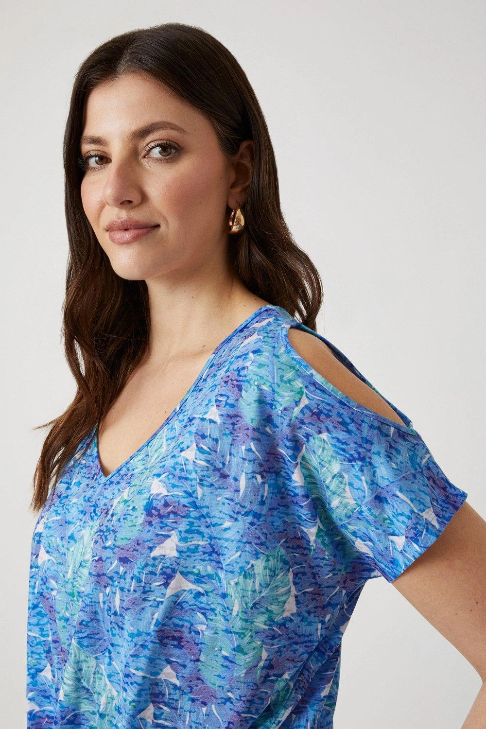 Be the first to review “Wallis Blue Palm Cold Shoulder Jersey Top” Cancel reply