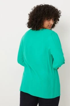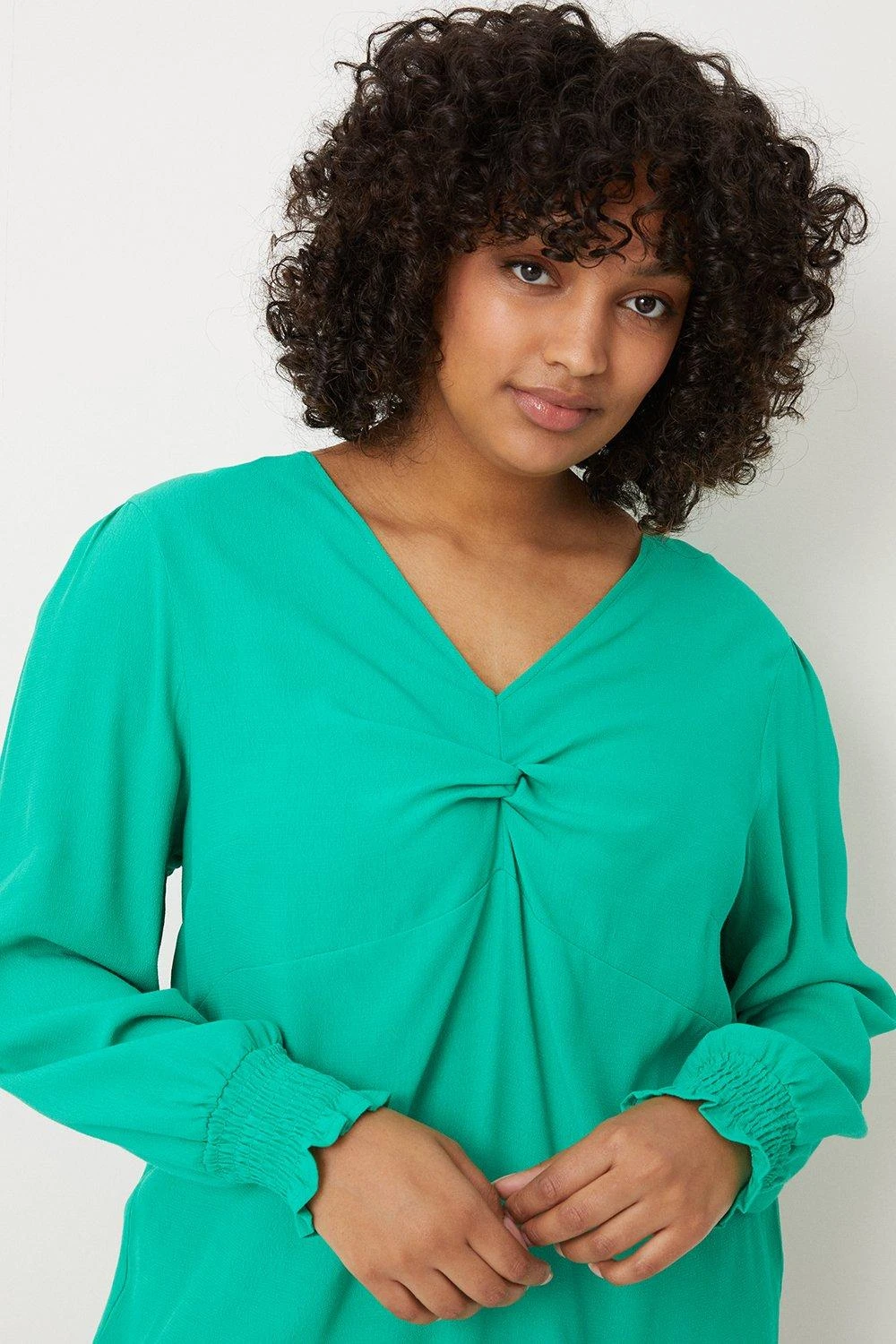 Complete the look with our new season tops. From casual camis to smart office tops to glam ruffled evening styles, we’ve got you covered for whatever you have in the diary. Make a style statement with puff sleeves and bold prints, or keep things classic with a chic cami or ruffles top. Intricate embellishments and fine prints are set to bring your everyday wardrobe to life, whilst a variety of fits are designed to flatter.Style: Curve Green Ruched Detail Top Ideal for: Daywear Fit: Regular Design: Ruched Model wears size UK 18 and is 5′ 9″ tall Make-up & Fragrance: Primer (Yves Saint Laurent, Touche Eclat Blur Primer 30ml), Foundation (Yves Saint Laurent, New All Hours Foundation), Blusher (Estée Lauder, Pure Color Envy Sculpting Blush), Mascara (Lancôme, Hypnôse Custom-Wear Volume Mascara), Setting Spray (Urban Decay, All Nighter Setting Spray 118ml), Fragrance (Valentino, Born In Roma Eau De Parfum).