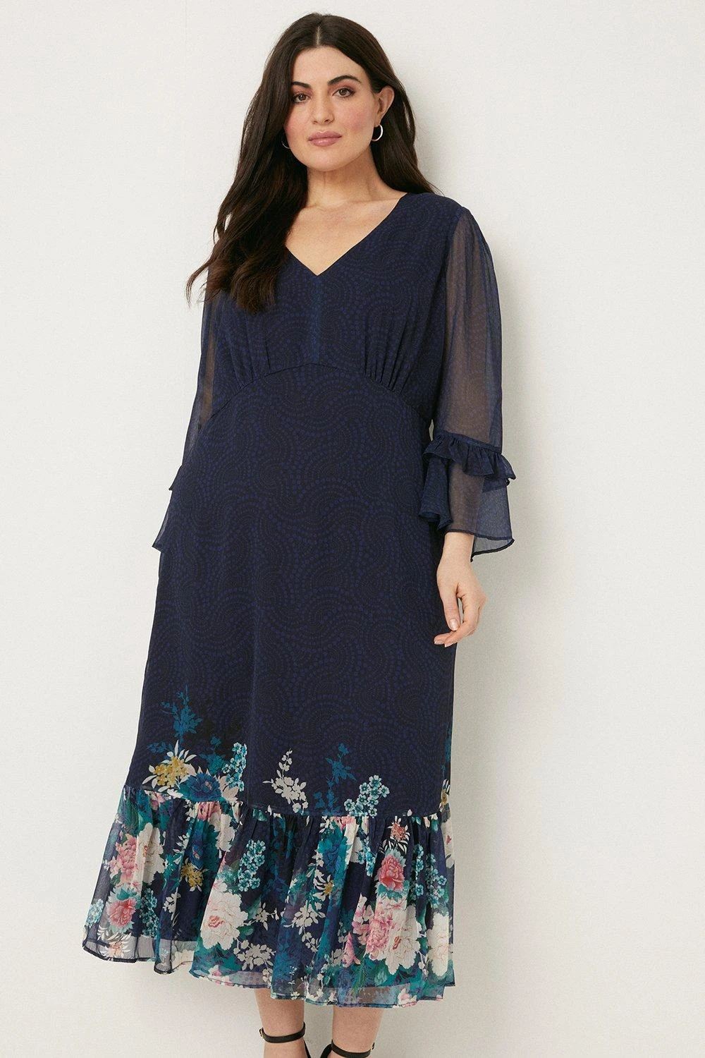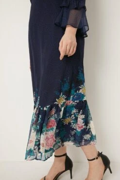 Be the first to review “Wallis Curve Navy Floral Border Print Tea Midi Dress” Cancel reply