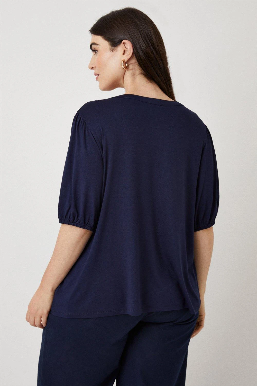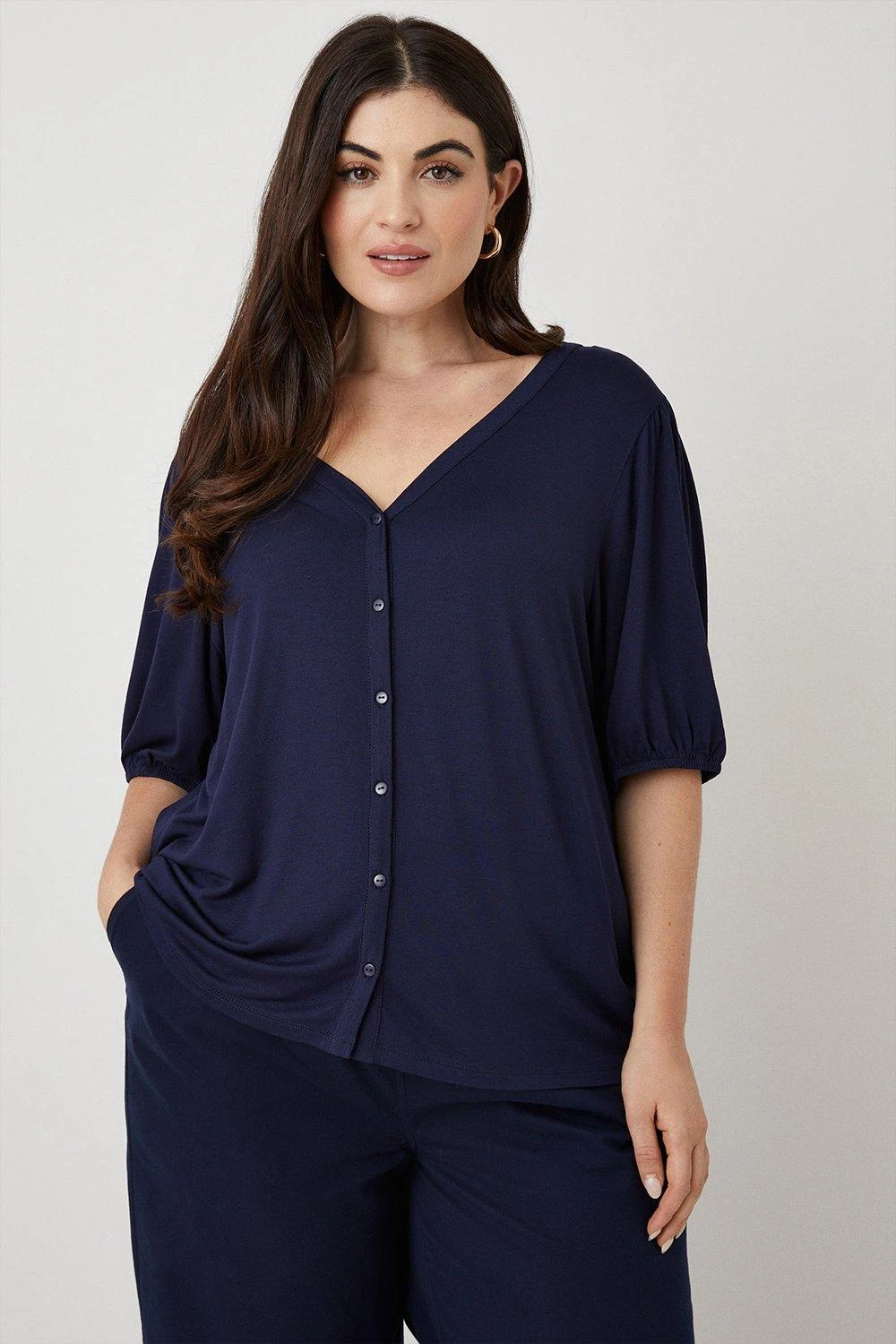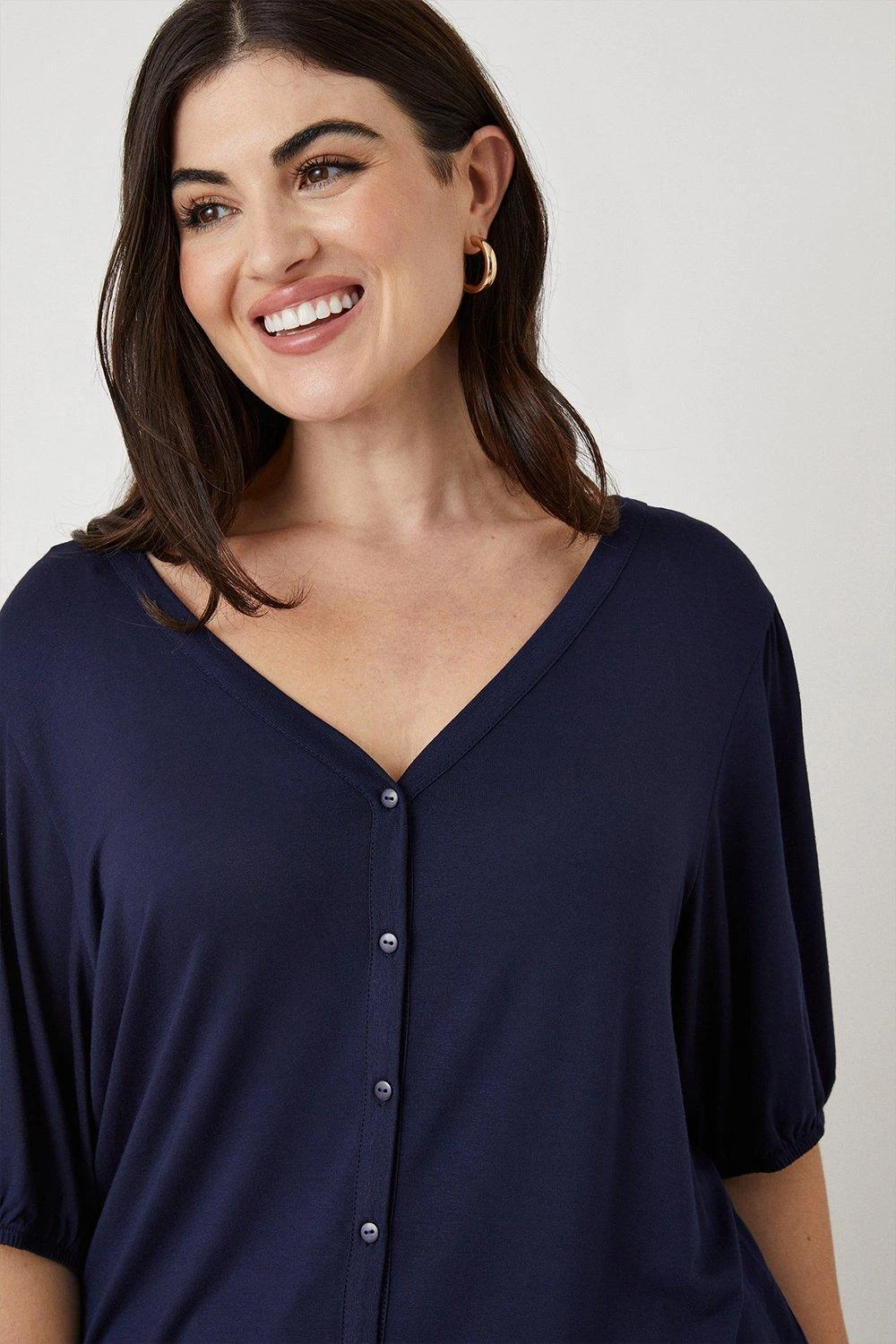 Complete the look with our new season tops. From casual camis to smart office tops to glam ruffled evening styles, we’ve got you covered for whatever you have in the diary. Make a style statement with puff sleeves and bold prints, or keep things classic with a chic cami or ruffles top. Intricate embellishments and fine prints are set to bring your everyday wardrobe to life, whilst a variety of fits are designed to flatter. Style: Curve Navy Jersey Shirt. Ideal for: Daywear. Fit: Regular. Design: All Over Print. Model wears size UK 18 and is 5′ 9″ tall. Make-up & Fragrance: Primer (Estée Lauder, The Smoother Universal Perfecting Primer + Finisher), Foundation (Estée Lauder, Double Wear Stay in Place Foundation SPF10), Mascara (Lancôme, Hypnôse Custom-Wear Volume Mascara), Bronzer (Estée Lauder, Bronze Goddess Healthy Glow Bronzer), Fragrance (Marc Jacobs, Daisy Eau De Toilette For Her).