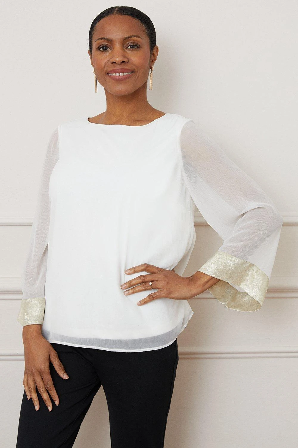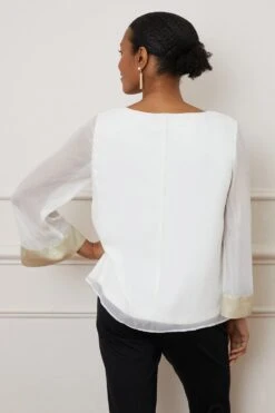 Be the first to review “Wallis Foil Trim 3/4 Sleeve Overlay Top” Cancel reply