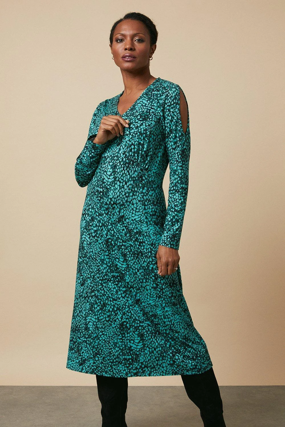 Be the first to review “Wallis Green Abstract Jersey Cold Shoulder Midi Dress” Cancel reply