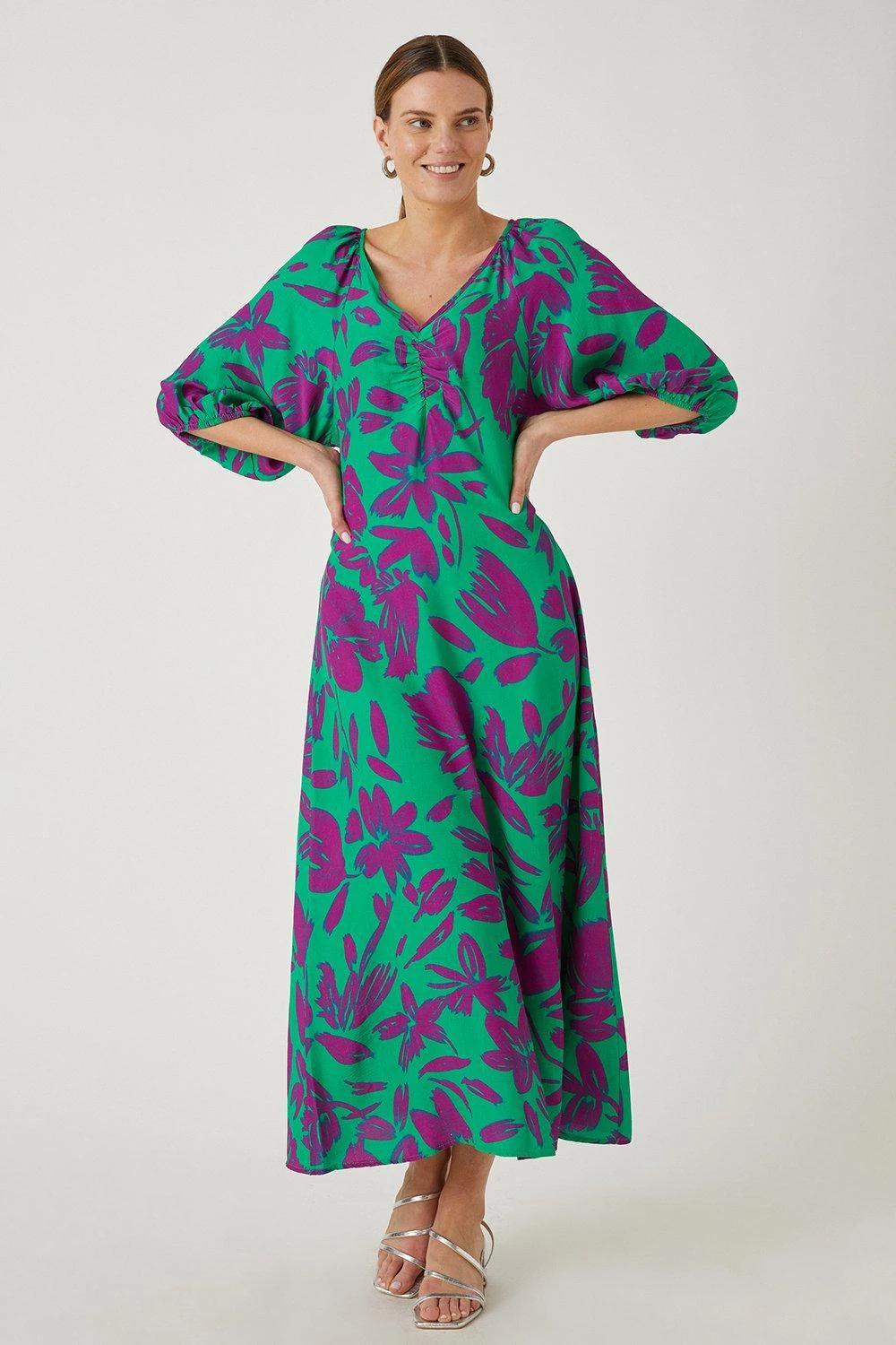 Just say dress. From sophisticated workwear styles to show stopping event-ready designs, our new season dresses have you covered for any and all occasions. Discover unique prints, elegant silhouettes and versatile styles. Whatever you’ve got in the diary, we’ve got the dress for it. Shop versatile Midi dresses, elegant Maxi dresses and everything in between. Style: Green Floral Ruched Detail Midi Dress. Ideal for: Daywear. Design: Ruched. Model wears size UK 10 and is 5′ 9″ tall. Make-up & Fragrance: Primer (Yves Saint Laurent, Touche Eclat Blur Primer 30ml), Foundation (Yves Saint Laurent, New All Hours Foundation), Blusher (Estée Lauder, Pure Color Envy Sculpting Blush), Mascara (Lancôme, Hypnôse Custom-Wear Volume Mascara), Setting Spray (Urban Decay, All Nighter Setting Spray 118ml), Fragrance (Valentino, Born In Roma Eau De Parfum).This garment is READY FOR THE FUTURE.Viscose sourced from responsibly managed forests and using responsible production practices.Find out more about our sustainability guidelines and goals.