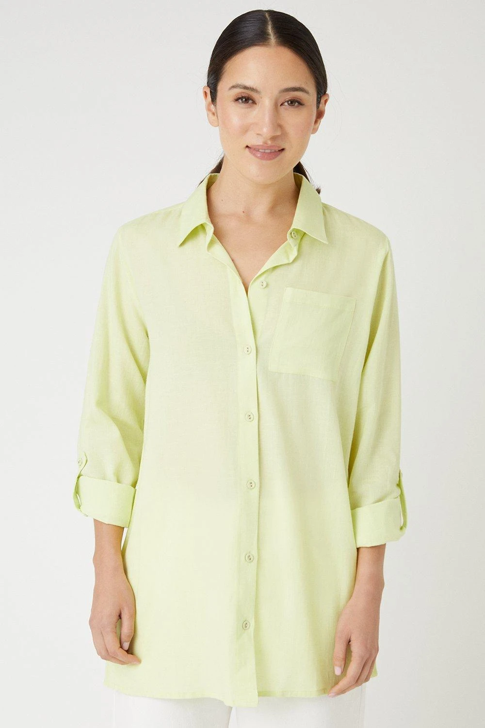 Whether you’re looking for something smart or keeping things casual, discover our new season shirts and give your essentials a refresh. From classic white shirts to chic embellished designs and bold hues, we’ve got the staple shirts your wardrobes been waiting for. Style: Linen Look Shirt. Ideal for: Daywear. Fit: Regular. Design: Plain. Model wears size UK 10 and is 5′ 9″ tall. Make-up & Fragrance: Primer (Yves Saint Laurent, Touche Eclat Blur Primer 30ml), Foundation (Yves Saint Laurent, New All Hours Foundation), Blusher (Estée Lauder, Pure Color Envy Sculpting Blush), Mascara (Lancôme, Hypnôse Custom-Wear Volume Mascara), Setting Spray (Urban Decay, All Nighter Setting Spray 118ml), Fragrance (Valentino, Born In Roma Eau De Parfum).