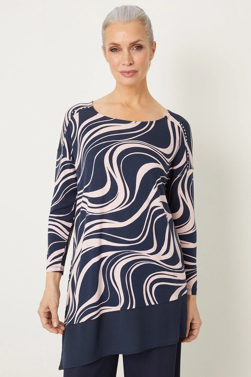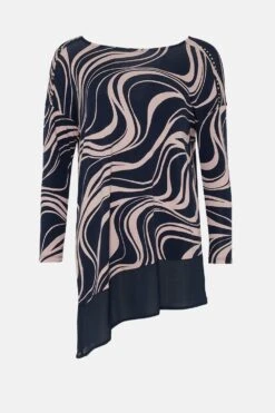 Be the first to review “Wallis Navy And Blush Swirl Asymmetric Jersey Top” Cancel reply
