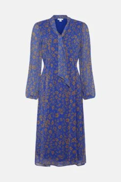 Be the first to review “Wallis Navy And Gold Floral Tie Neck Midi Dress” Cancel reply