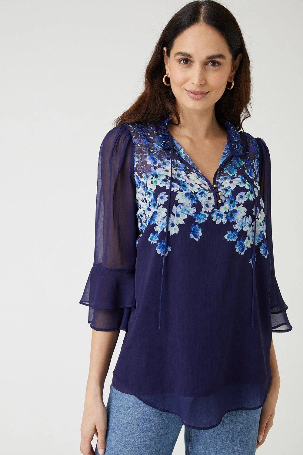 Be the first to review “Wallis Navy Floral Border Tie Neck Blouse” Cancel reply