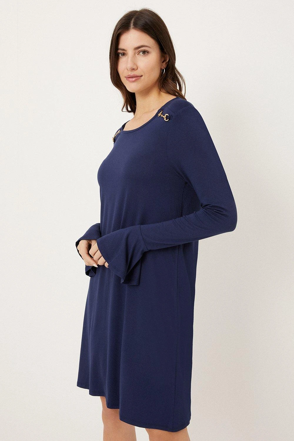 Just say dress. From sophisticated workwear styles to show stopping event-ready designs, our new season dresses have you covered for any and all occasions. Discover unique prints, elegant silhouettes and versatile styles. Whatever you’ve got in the diary, we’ve got the dress for it. Shop versatile Midi dresses, elegant Maxi dresses and everything in between.Style: Navy Jersey Gold Chain Shift Dress Ideal for: Daywear Design: Chain Model wears size UK 10 and is 5′ 9″ tall Make-up & Fragrance: Primer (Benefit, Porefessional Face Primer 22ml), Foundation (Estée Lauder, Futurist Hydra Rescue Moisturizing Foundation SPF45), Mascara (Benefit , Badgal Bang Volumising Mascara 8.5g Pitch Black), Brow Pencil (Benefit, Goof Proof Easy Shape And Fill Brow Pencil 0.3g), Fragrance (Marc Jacobs Daisy Eau De Toilette For Her).