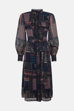 Be the first to review “Wallis Navy Patchwork Print Belted Midi Dress” Cancel reply