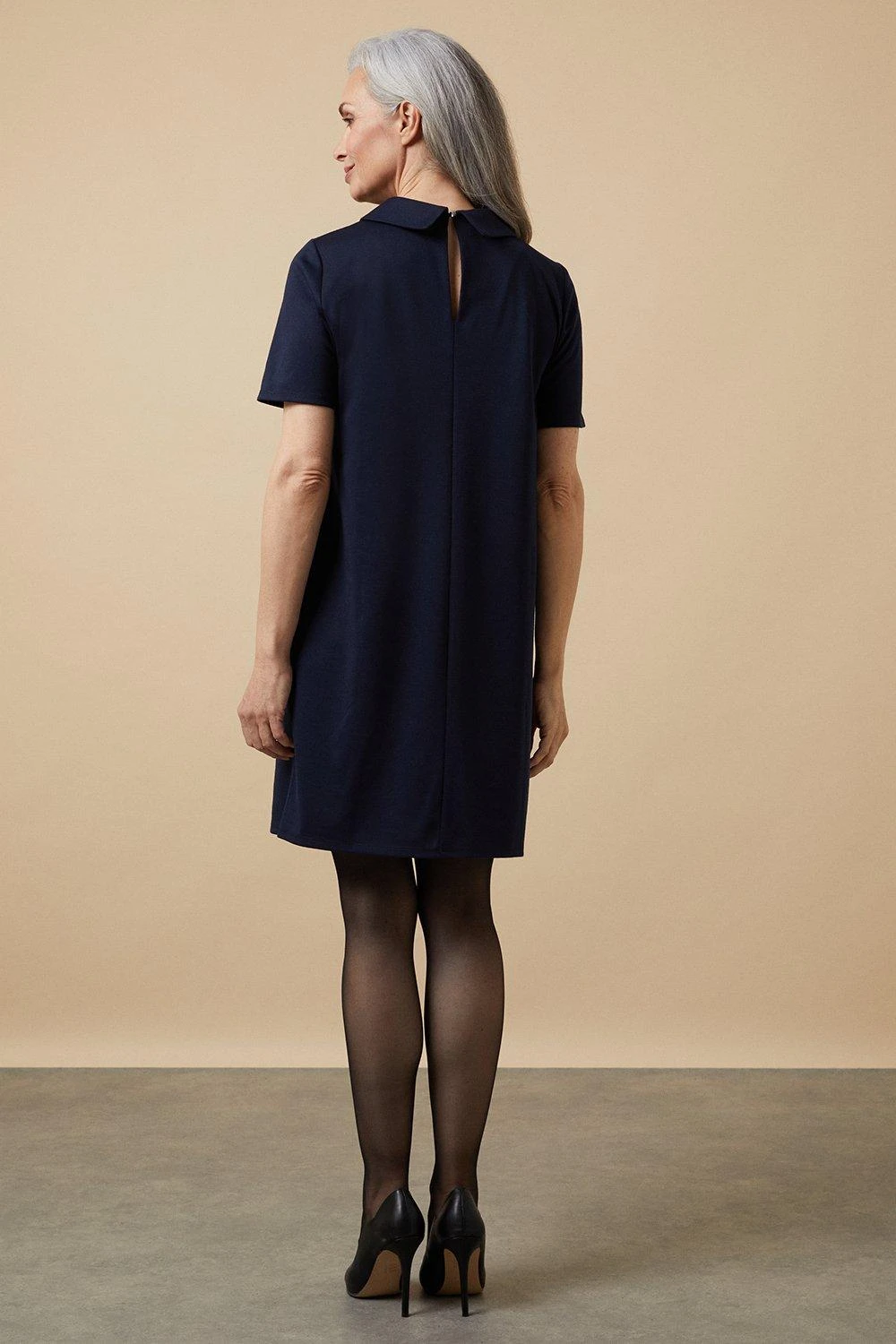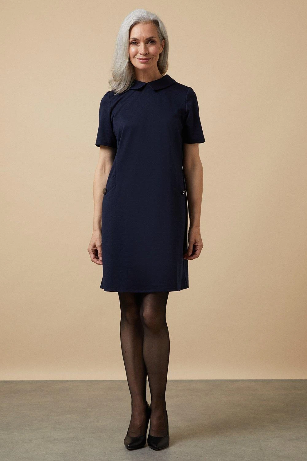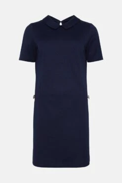 Navy Ponte Collar Shift Dress