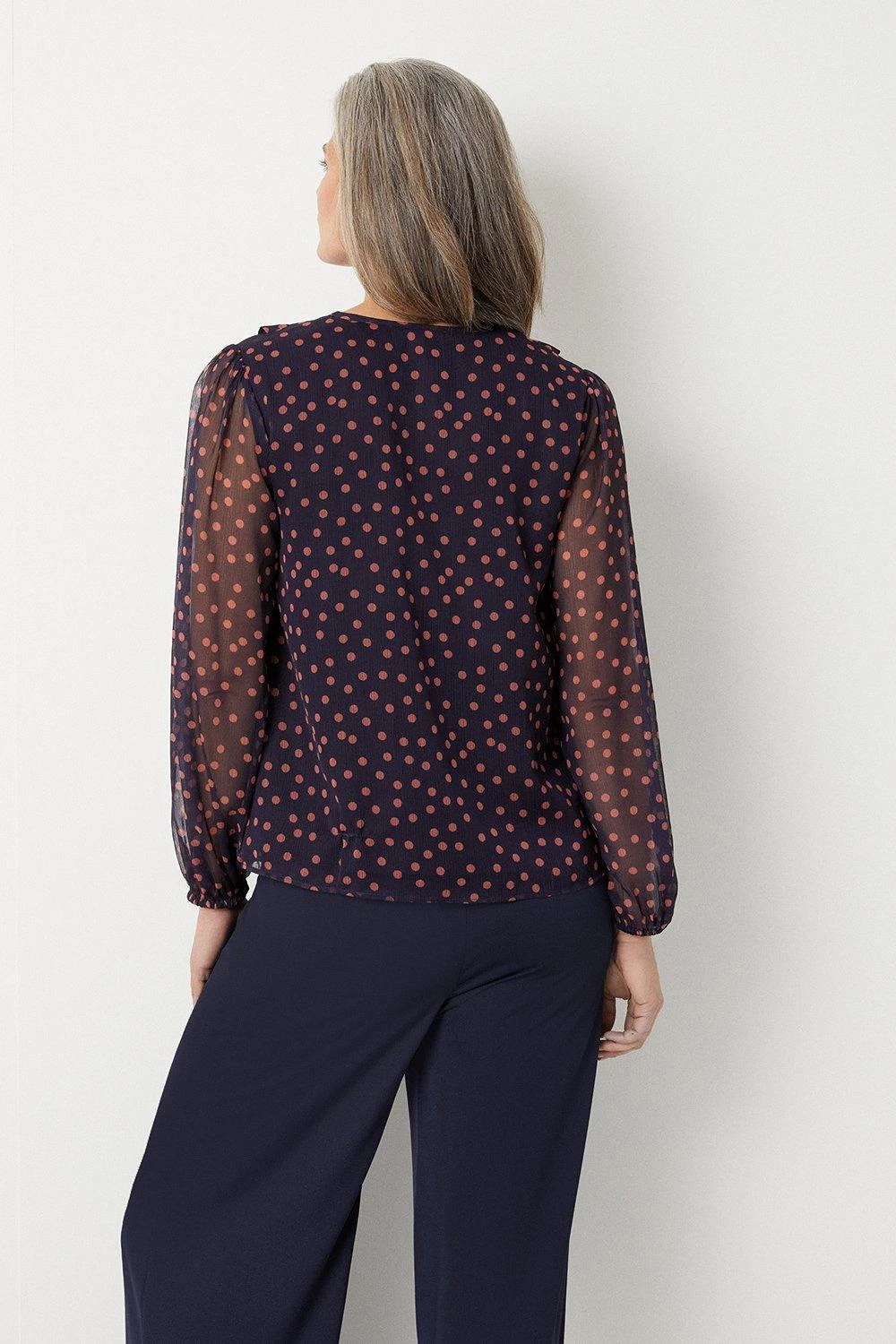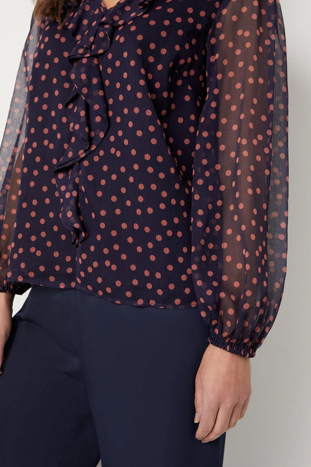 Navy Spot Ruffle Top