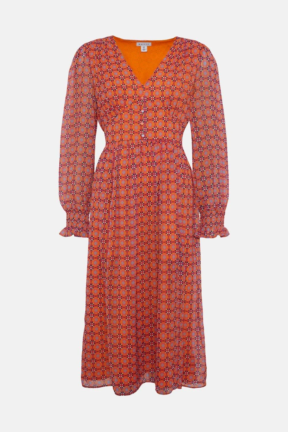 Be the first to review “Wallis Orange Geo Print Button Midi Dresses” Cancel reply
