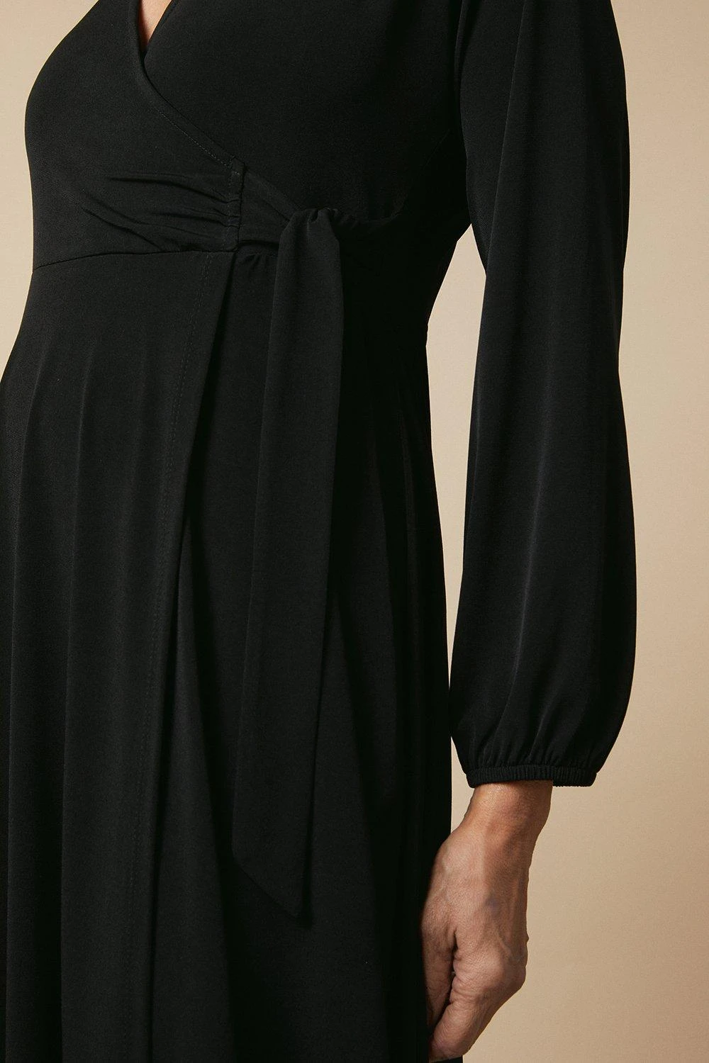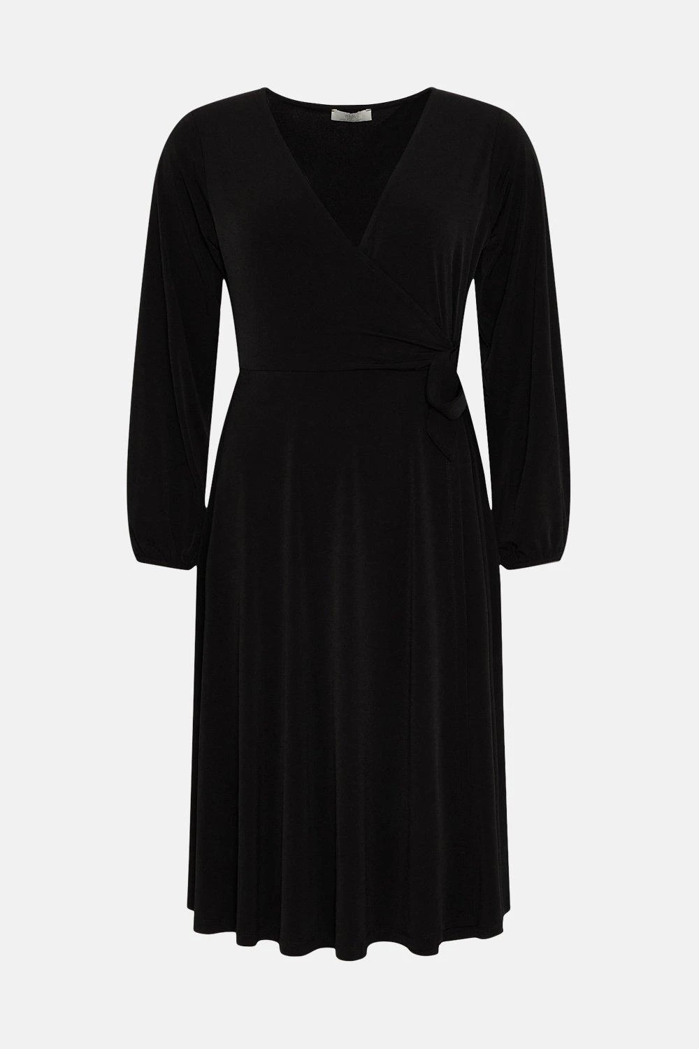 Petite Black Jersey Wrap Midi Dress