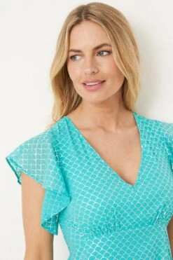 Fun and daring, this design features a glittered print reminiscent of mermaid scales with ruffles at the sleeves and hem to add to the whimsical feel. Cut to a midaxi length that’s ideal for summer occasions. Style: Petite Glitter Print Ruffle Midaxi Dress. Ideal for: Occasion. Design: Ruffle. Model wears size UK 10 and is 5′ 3″ tall. Make-up & Fragrance: Primer (Estée Lauder, The Mattifier Shine Control Perfecting Primer + Finisher), Foundation (Estée Lauder, Double Wear Stay in Place Foundation SPF10), Concealer (Estée Lauder Double Wear Stay-In-Place Flawless Wear Concealer), Bronzer (Benefit, Hoola Matte Powder Bronzer), Blusher (Lancôme, Blush Subtil Powder Blusher with Brush), Mascara (Benefit, They’Re Real Lengthening Mascara Jet Black 8.5g), Fragrance (Lancôme, La Vie est Belle Eau de Parfum).