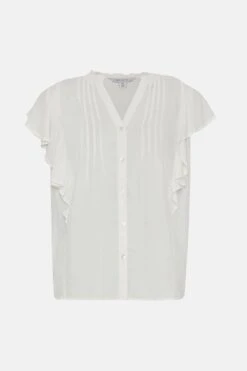 Complete the look with our new season tops. From casual camis to smart office tops to glam ruffled evening styles, we’ve got you covered for whatever you have in the diary. Make a style statement with puff sleeves and bold prints, or keep things classic with a chic cami or ruffles top. Intricate embellishments and fine prints are set to bring your everyday wardrobe to life, whilst a variety of fits are designed to flatter. Style: Petite Plain Short Sleeve Button Through Top. Ideal for: Daywear. Fit: Regular. Design: Plain. Model wears size UK 10 and is 5′ 9″ tall. Make-up & Fragrance: Primer (Yves Saint Laurent, Touche Eclat Blur Primer 30ml), Foundation (Yves Saint Laurent, New All Hours Foundation), Blusher (Estée Lauder, Pure Color Envy Sculpting Blush), Mascara (Lancôme, Hypnôse Custom-Wear Volume Mascara), Setting Spray (Urban Decay, All Nighter Setting Spray 118ml), Fragrance (Valentino, Born In Roma Eau De Parfum).