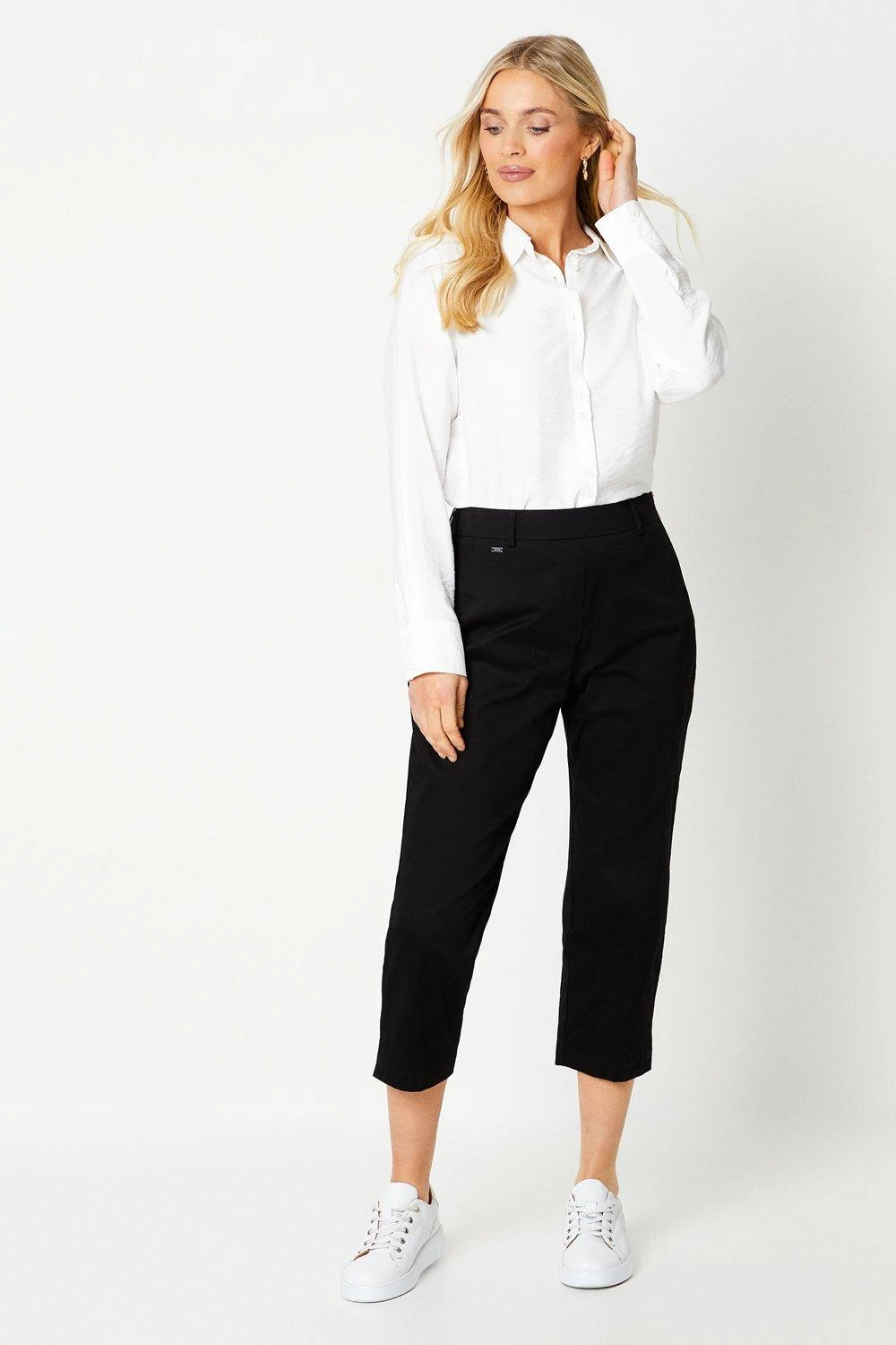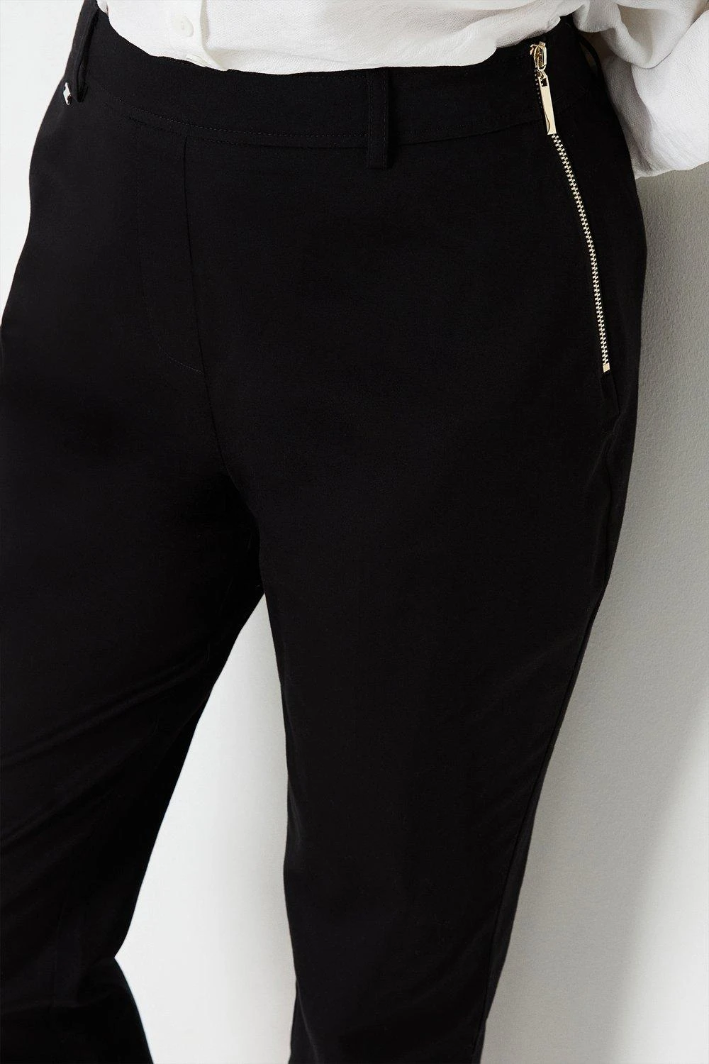 Refresh your wardrobe staples with new season trousers for every occasion. From chic wide leg designs to, to formal tapered suit trousers and versatile leggings. From work to weekend, these trousers have you covered. Style: Petite Side Zip Stretch Crop Trousers. Ideal for: Daywear. Fit: Regular. Design: Zips. Model wears size UK 10 and is 5′ 3″ tall. Make-up & Fragrance: Primer (Estée Lauder, The Smoother Universal Perfecting Primer + Finisher), Foundation (Estée Lauder, Double Wear Stay in Place Foundation SPF10), Mascara (Lancôme, Hypnôse Custom-Wear Volume Mascara), Bronzer (Estée Lauder, Bronze Goddess Healthy Glow Bronzer), Fragrance (Marc Jacobs, Daisy Eau De Toilette For Her).This garment is READY FOR THE FUTURE.Better Cotton is produced under a set of farm-level standards. Under the Better Cotton Initiative (BCI) cotton farmers produce cotton in a way that respects people and the environment, and improves livelihoods. Better Cotton is sourced via a system of mass balance and is not physically traceable to end products.