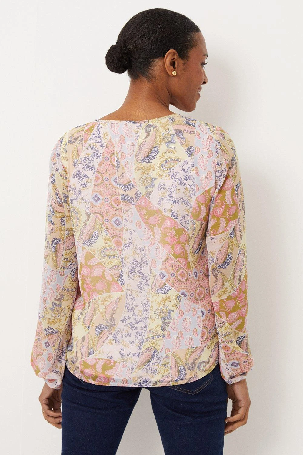 Complete the look with our new season tops. From casual camis to smart office tops to glam ruffled evening styles, we’ve got you covered for whatever you have in the diary. Make a style statement with puff sleeves and bold prints, or keep things classic with a chic cami or ruffles top. Intricate embellishments and fine prints are set to bring your everyday wardrobe to life, whilst a variety of fits are designed to flatter.Style: Pink Paisley Patchwork Tie Neck Ruffle Blouse Ideal for: Daywear Design: Ruffle Model wears size UK 10 and is 5′ 9″ tall Make-up & Fragrance: Primer (Benefit, Porefessional Face Primer 22ml), Foundation (Estée Lauder, Futurist Hydra Rescue Moisturizing Foundation SPF45), Mascara (Benefit , Badgal Bang Volumising Mascara 8.5g Pitch Black), Brow Pencil (Benefit, Goof Proof Easy Shape And Fill Brow Pencil 0.3g), Fragrance (Marc Jacobs Daisy Eau De Toilette For Her).