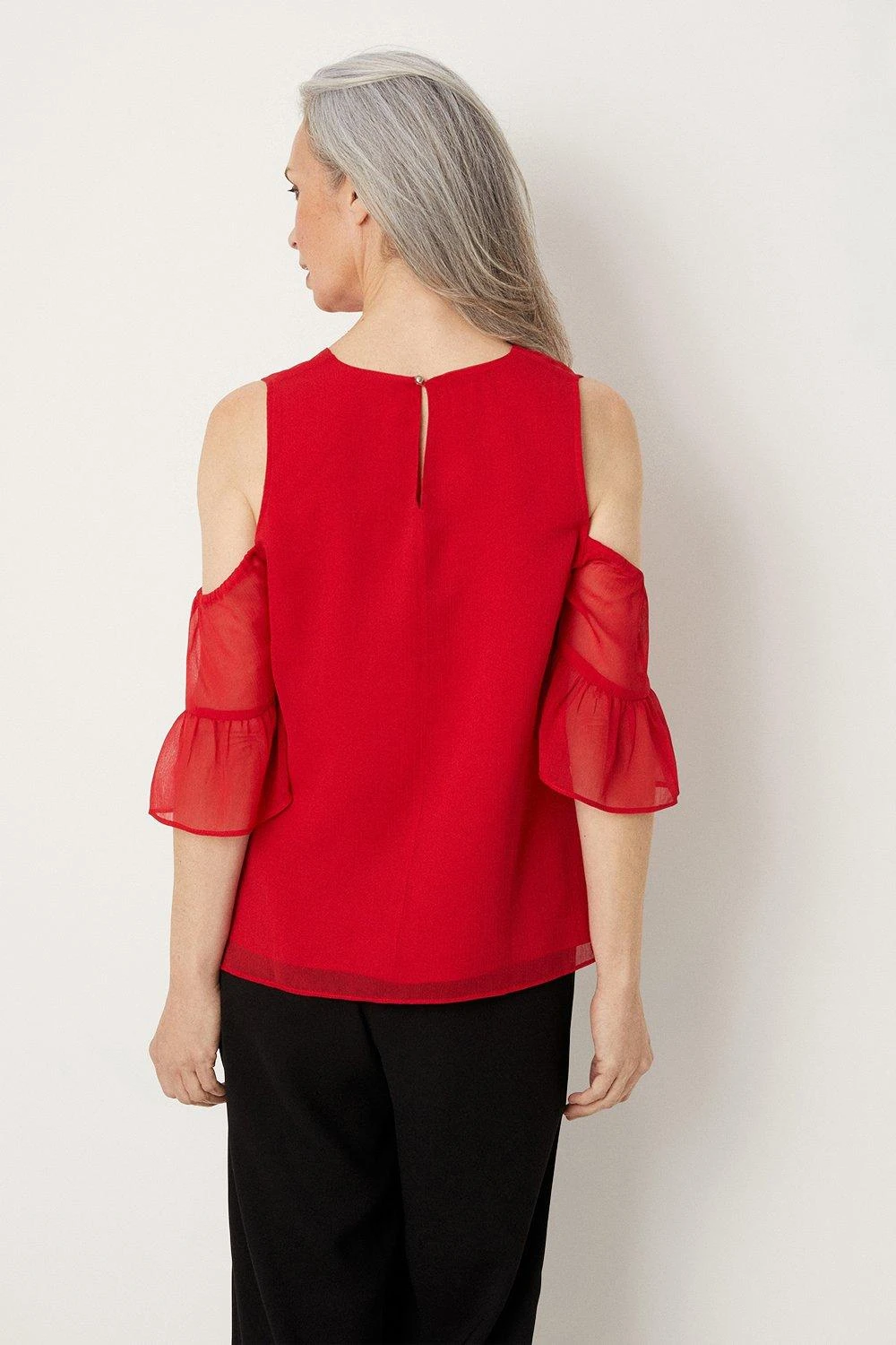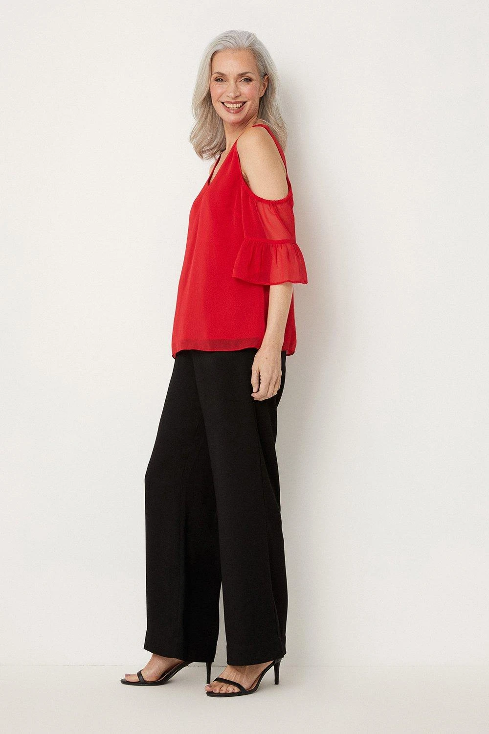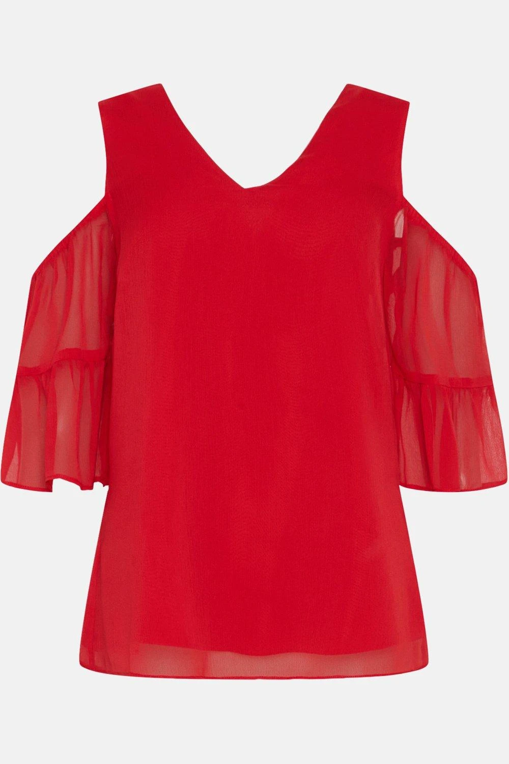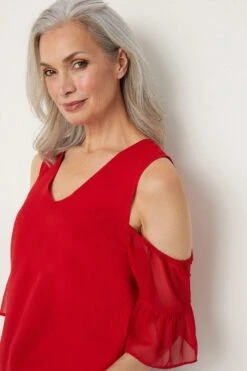 Complete the look with our new season tops. From casual camis to smart office tops to glam ruffled evening styles, we’ve got you covered for whatever you have in the diary. Make a style statement with puff sleeves and bold prints, or keep things classic with a chic cami or ruffles top. Intricate embellishments and fine prints are set to bring your everyday wardrobe to life, whilst a variety of fits are designed to flatter.Style: Red Cold Shoulder Flute Sleeve Top Ideal for: Daywear Fit: Regular Design: Plain Model wears size UK 10 and is 5′ 9″ tall Make-up & Fragrance: Primer (Estée Lauder, The Mattifier Shine Control Perfecting Primer + Finisher), Foundation (Estée Lauder, Double Wear Stay in Place Foundation SPF10), Concealer (Estée Lauder Double Wear Stay-In-Place Flawless Wear Concealer), Bronzer (Benefit, Hoola Matte Powder Bronzer), Blusher (Lancôme, Blush Subtil Powder Blusher with Brush), Mascara (Benefit, They’Re Real Lengthening Mascara Jet Black 8.5g), Fragrance (Lancôme, La Vie est Belle Eau de Parfum).This garment is READY FOR THE FUTURE.Recycled fibres can be used for a number of materials including polyester, cotton and acrylic. They are a more sustainable alternative, as they take less energy, land and water to make than virgin fibres, and are often derived from products that would otherwise have gone to wasteFind out more about our sustainability guidelines and goals.