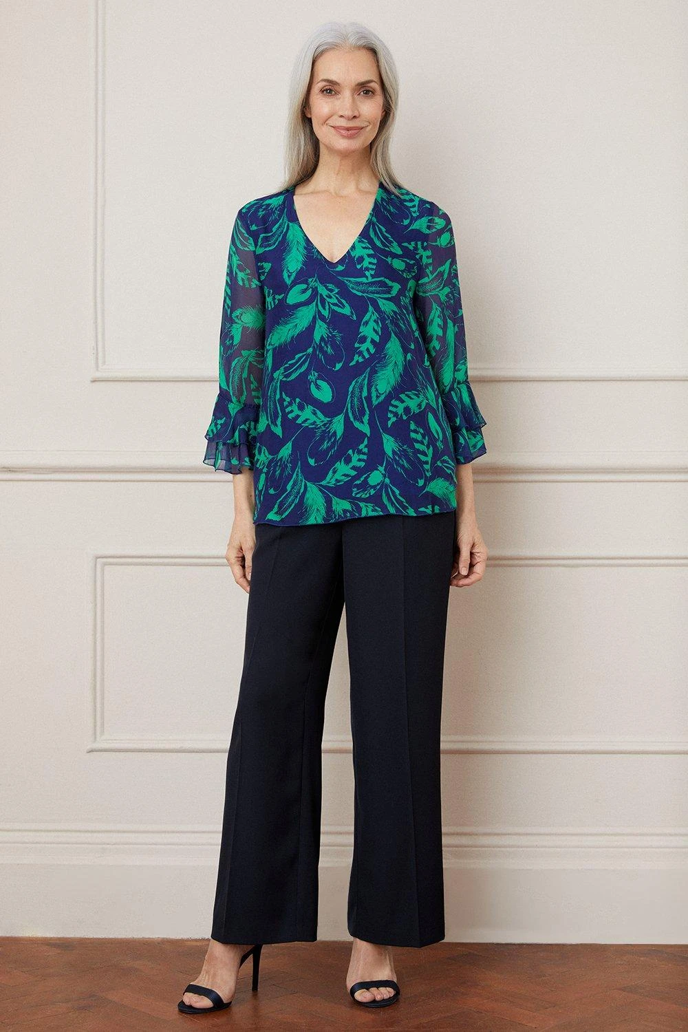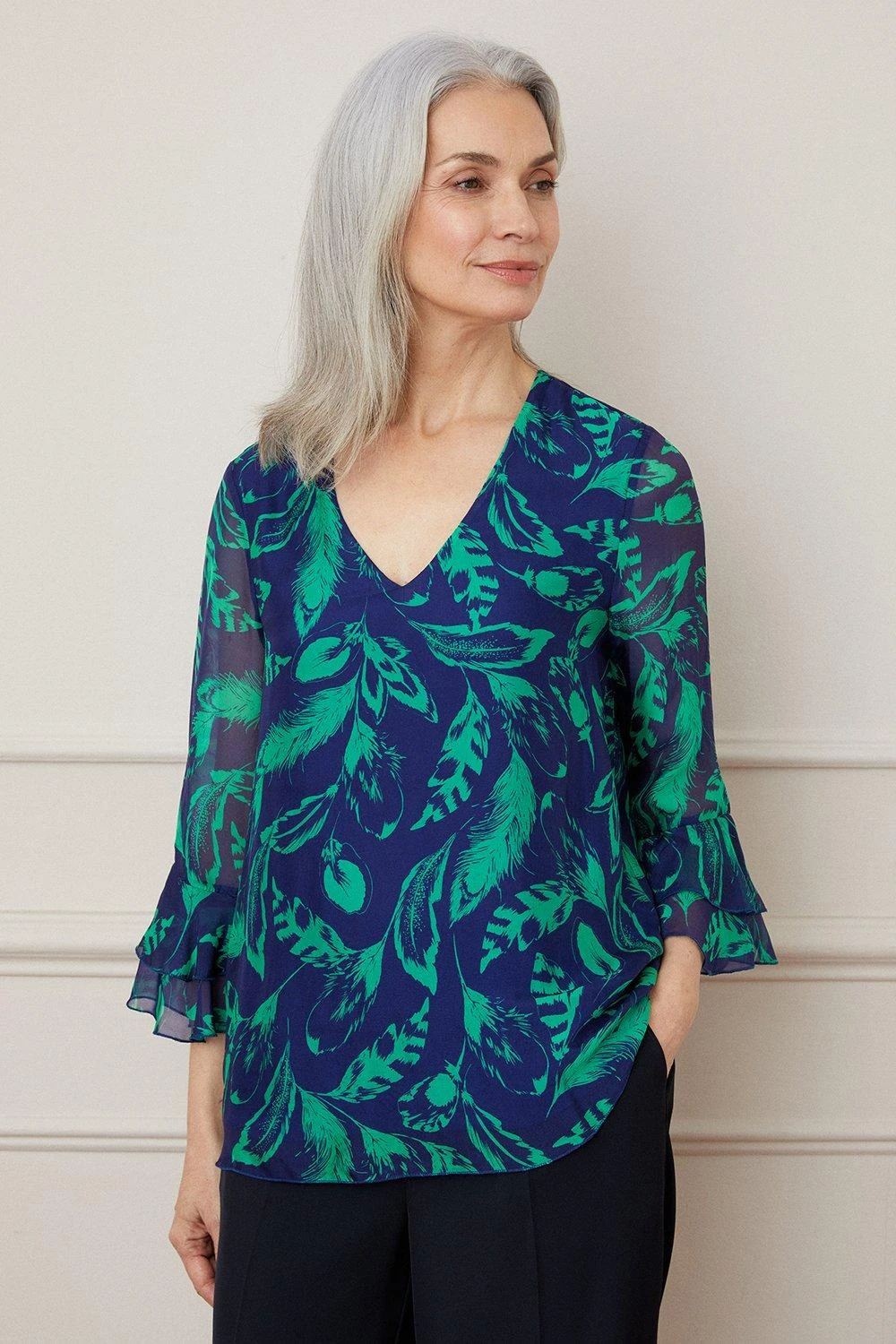 Be the first to review “Wallis Silk Mix Feather Print Flute Sleeve Top” Cancel reply