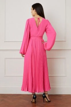 Designed in the colour of the season, this bright pink maxi dress is the pop of colour your wardrobe needs right now. Crafted from breezy chiffon with a V-Neck, pleated skirt and a self-tie belt at the waist to frame the silhouette to perfection. Style: Tall Pleated Wrap Maxi Dress. Ideal for: Occasion. Design: Wrap. Model wears size UK 10 and is 5′ 11″ tall. Make-up & Fragrance: Primer (Estée Lauder, The Mattifier Shine Control Perfecting Primer + Finisher), Foundation (Estée Lauder, Double Wear Stay in Place Foundation SPF10), Concealer (Estée Lauder Double Wear Stay-In-Place Flawless Wear Concealer), Bronzer (Benefit, Hoola Matte Powder Bronzer), Blusher (Lancôme, Blush Subtil Powder Blusher with Brush), Mascara (Benefit, They’Re Real Lengthening Mascara Jet Black 8.5g), Fragrance (Lancôme, La Vie est Belle Eau de Parfum).