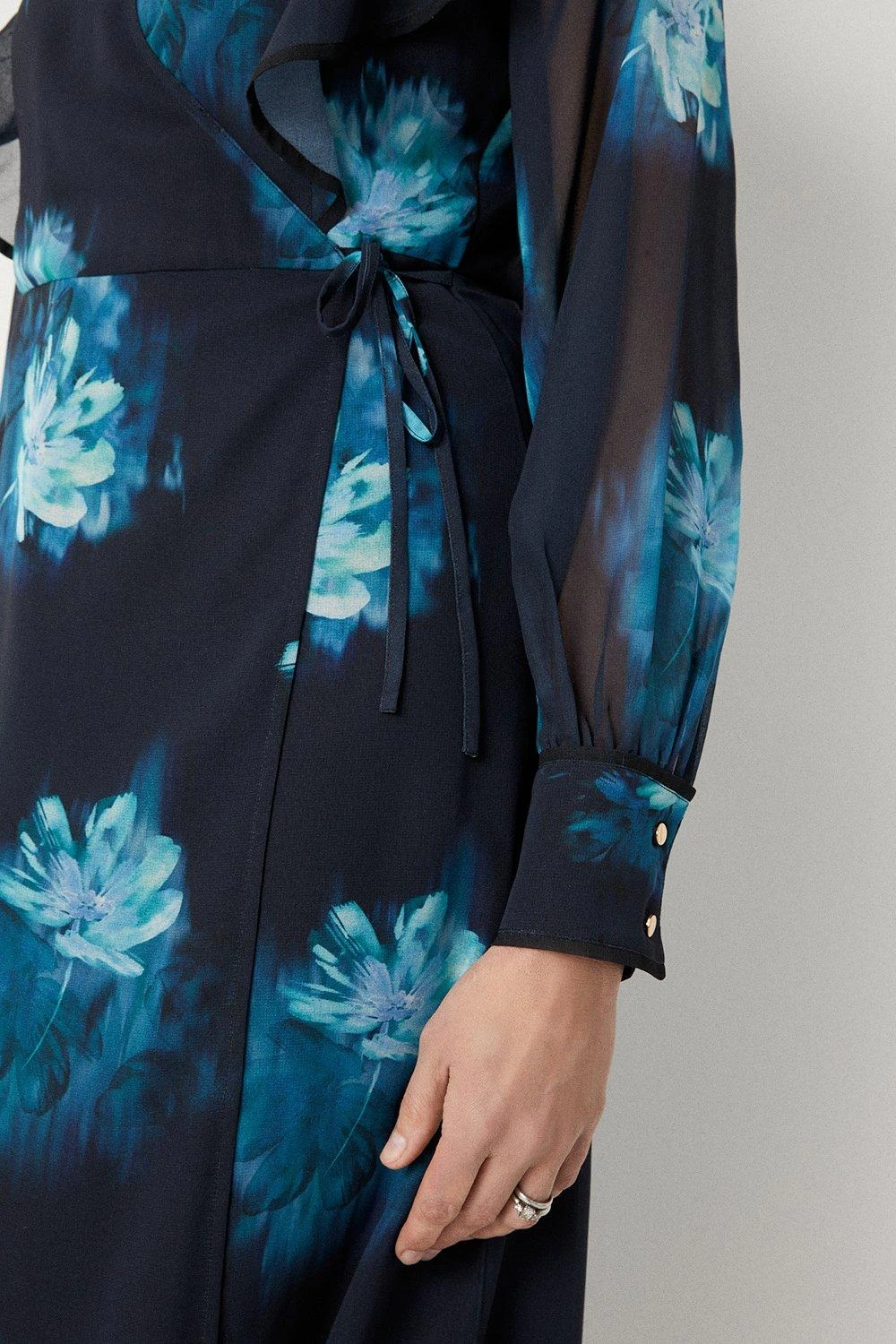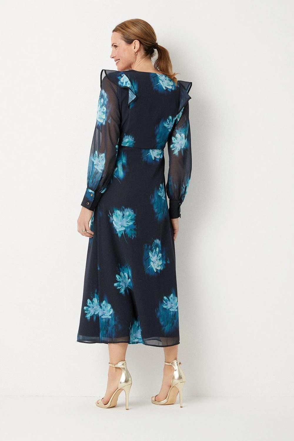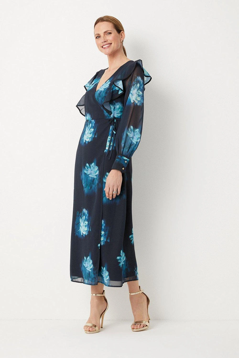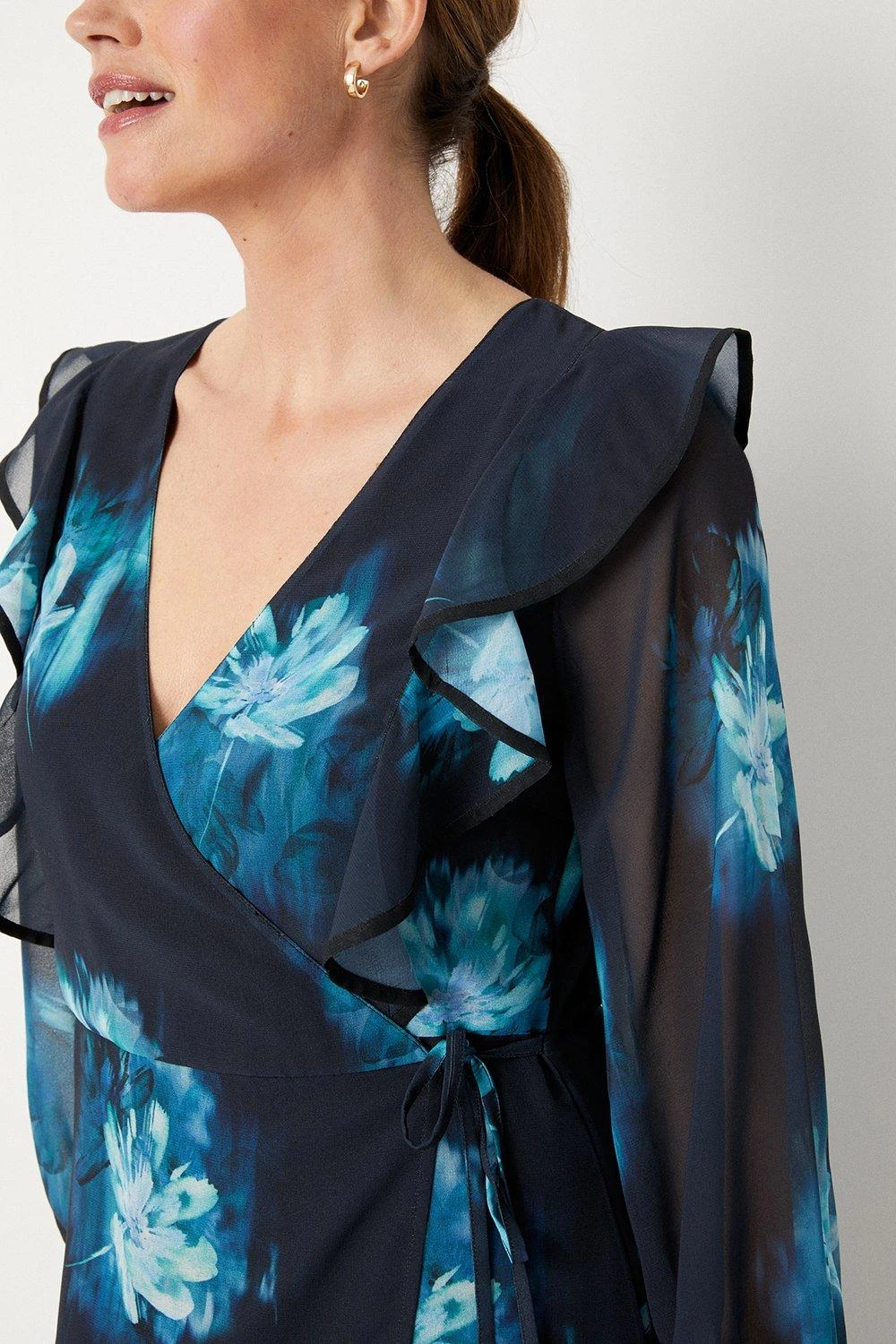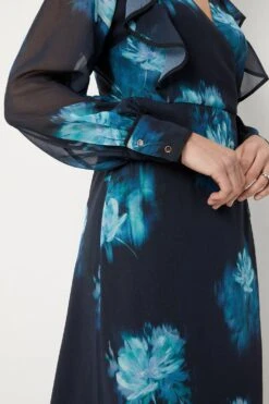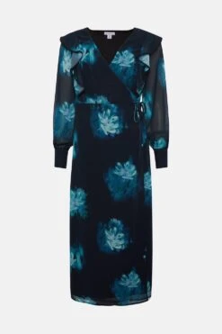Be the first to review “Wallis Teal Blurred Floral Ruffle Neck Wrap Midi Dress” Cancel reply